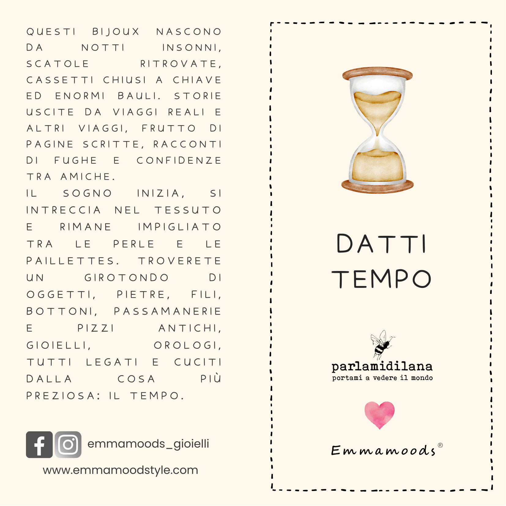 Durante i miei viaggi o nelle occasioni che mi si presentano, certi oggetti mi "chiamano". Portano con sé le loro storie e la voglia di tornare al Mondo L'idea alla base è quella dell'upcycling e in questa micro collezione ho coinvolto le splendide artigiane di PARLAMIDILANAper ricamarvi a mano, come si faceva una volta, le parole chiavi che accompagnano questo oggetto particolare legato al significato.